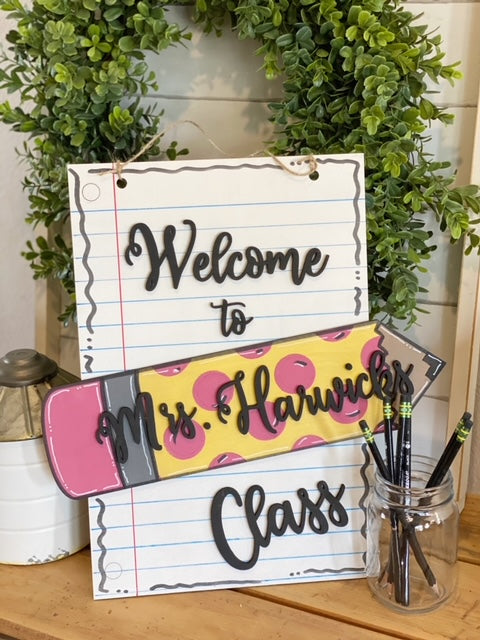 *Welcome to "teachers name" classroom notebook paper door hanger 16"x11"