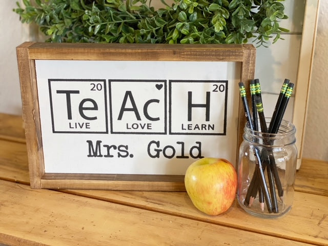 *TeAcH sign with teacher name 13"x9"