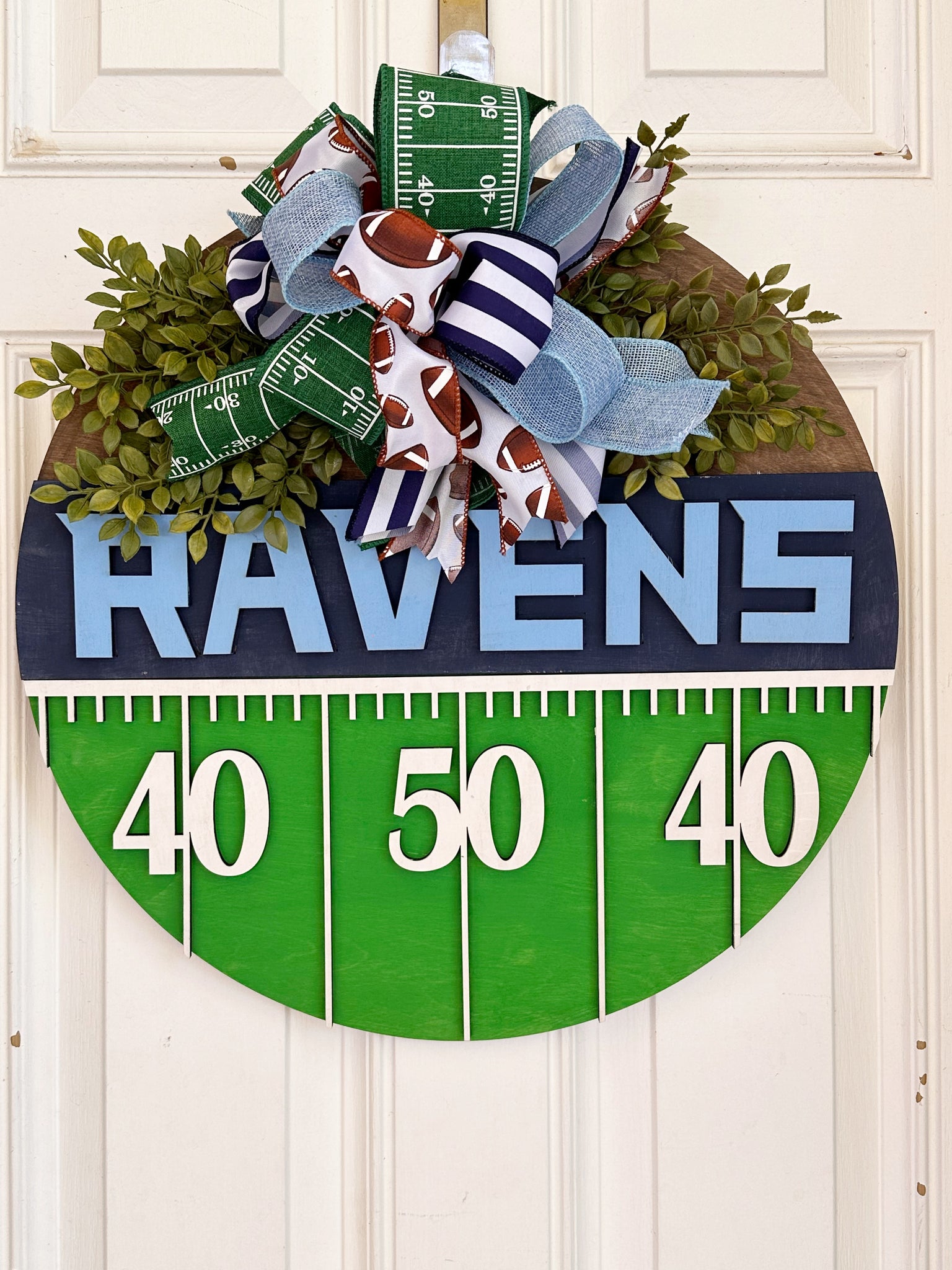 There are two projects to choose from. The football door hangers measure 18" around and the porch leaners are 4' tall.