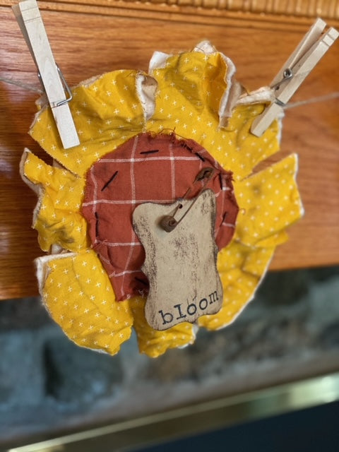 Working with fabric to make these adorable sunflowers so much fun and change of pace from working with paint the wood. And they seriously turned out soooooo cute.