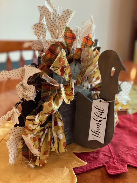 We just love this 3D turkey all dressed up with the fabric we added to him. He's the perfect center piece for your Thanksgiving table.