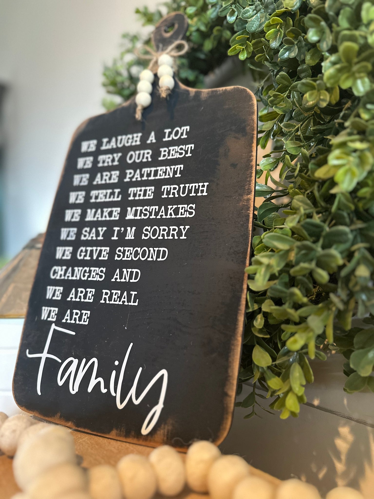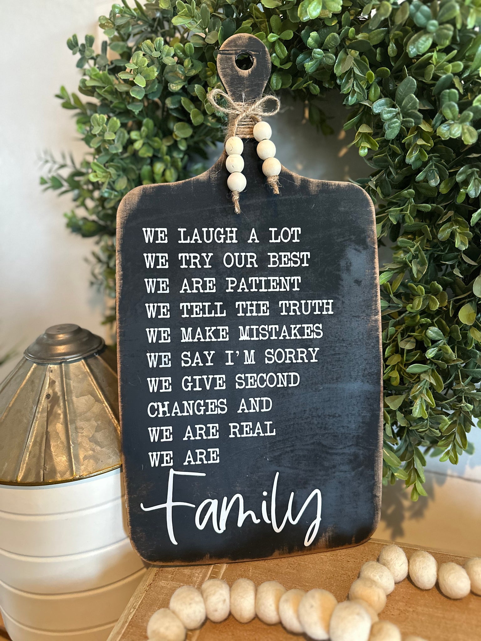 Grab this adorable Family Moto Faux Cutting Board for your adorable Family!
