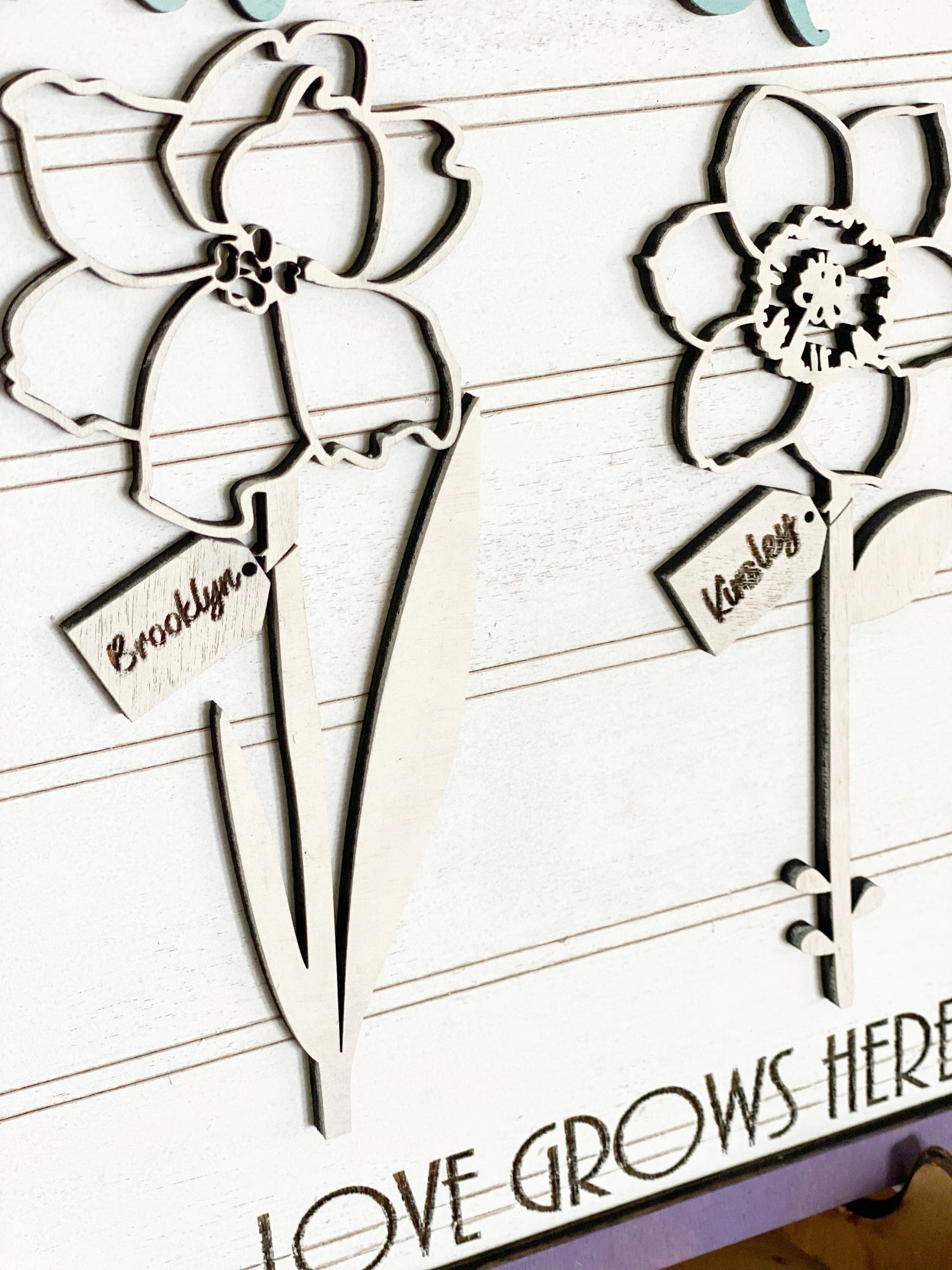This sweet keepsake is perfect for a gift for Grandma on this Mother’s Day. We can accommodate up to six flowers her sign and will include an easel to display it with.