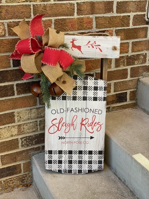IF YOU CHOOSE THE SLED, THE LAUNDRY SIGN OR THE CRATE PLEASE LEAVE IN THE NOTES AT CHECKOUT THE LAST NAME FOR THE CRATE OR THE LAUNDRY SIGN OR INITIAL FOR THE SLED OR IF YOU WOULD JUST LIKE IT TO SAY SLEIGH RIDES.
