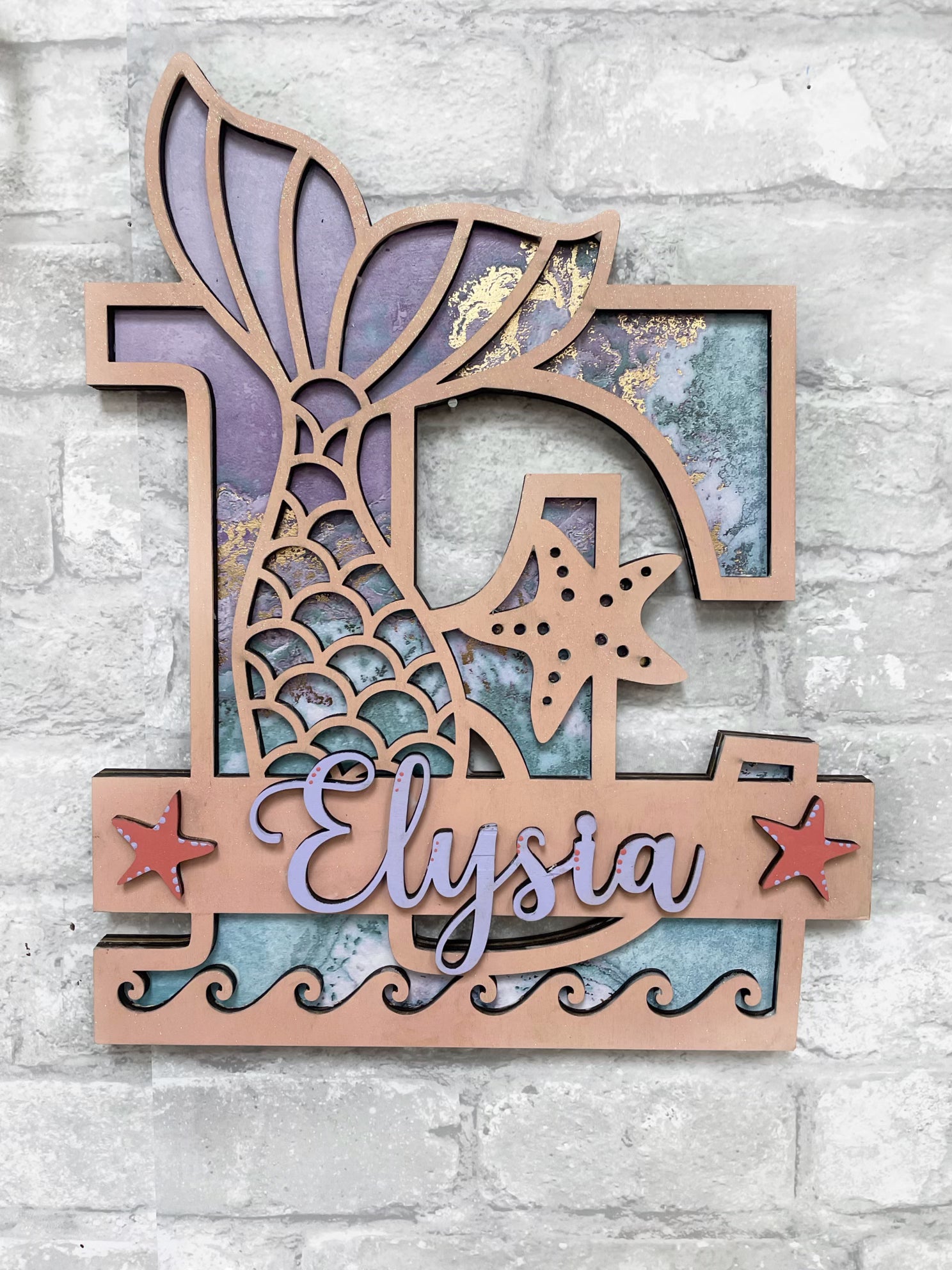 – Personalized Mermaid Tail Monogram letter. The kids will learn the art of decoupage and paint 3D wood parts
