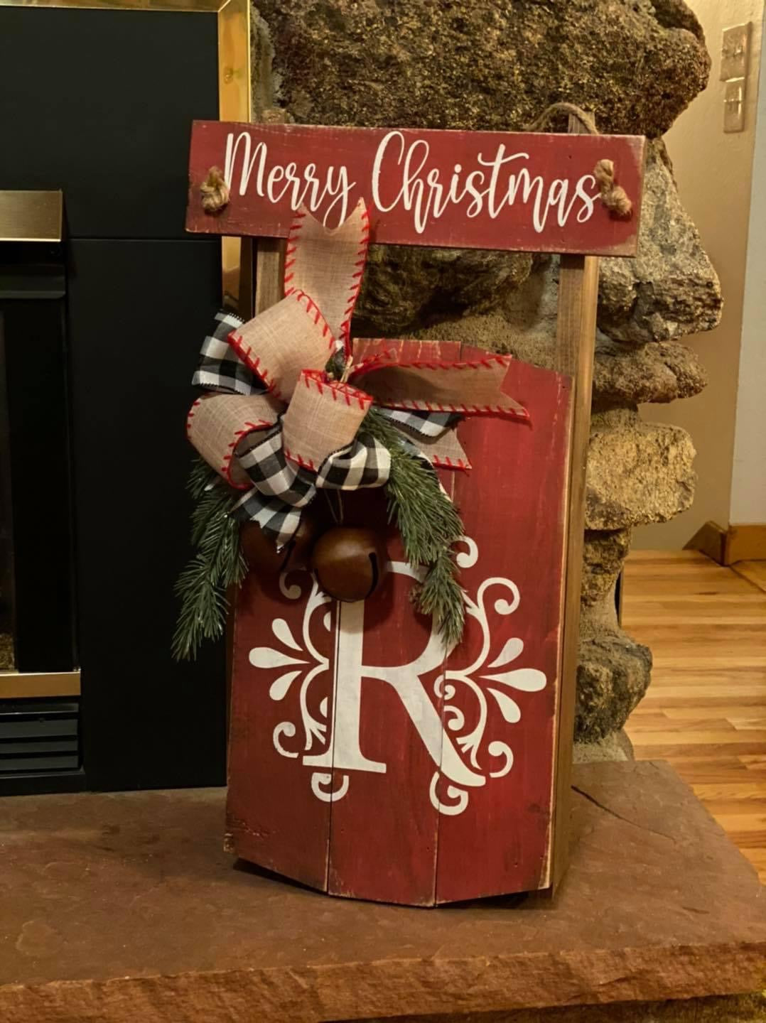 These sleds have been super popular for us this year. We pre-made some just for this sale. They are ready to go after we personalize it for you. PLEASE LEAVE IN THE NOTES AT CHECKOUT if you would like the old fashioned sleigh rides or a monogram letter on your sled. Also what color you would like the top of sled painted and colors of the stencils you like painted on as well. We will finish it for you and add a bow to accent it and some bells.