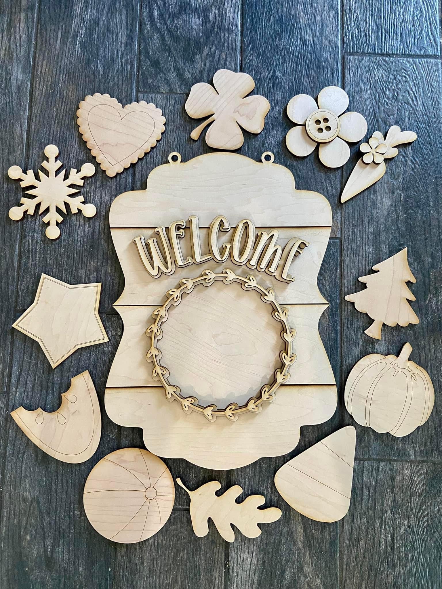 $35 DEAL is for wood pieces ONLY! The main door hanger piece measures 18” and includes 13 interchangeable pieces.