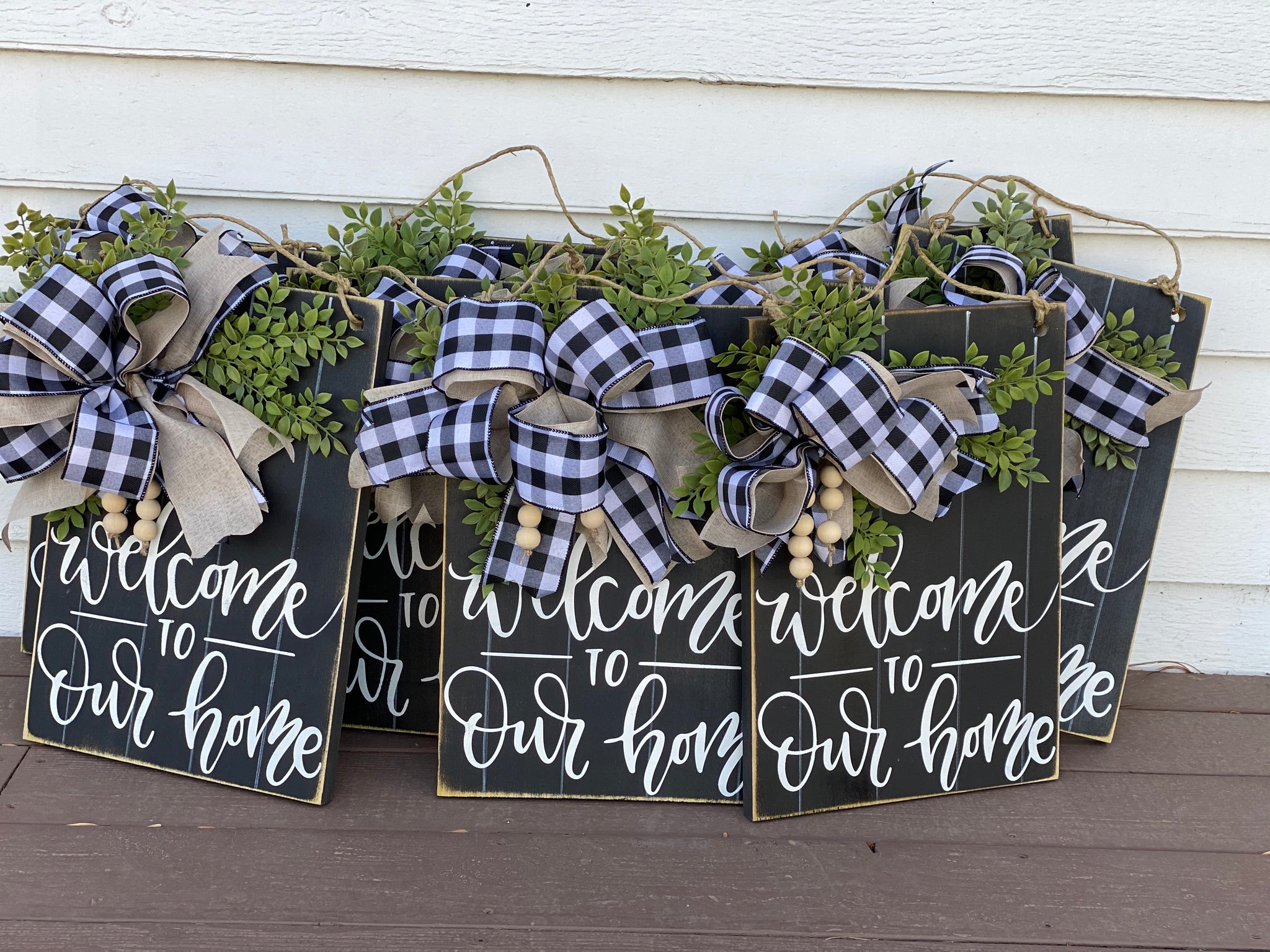 It measures 11x16. It’s hand-painted and a bow has been added along with some greenery and some neutral color beads to finish it off just perfectly.