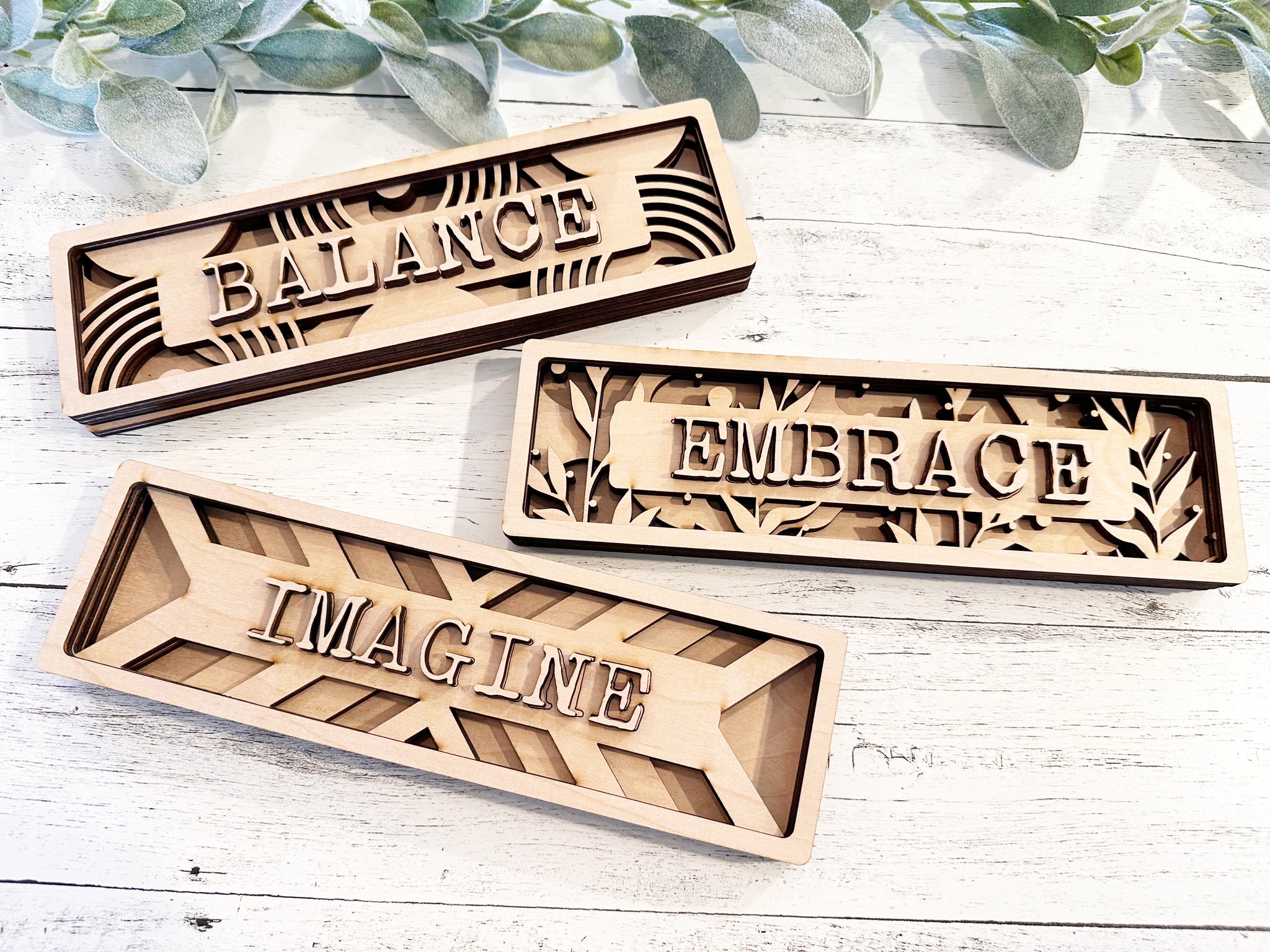 Whether you've chosen a word to reflect personal growth, professional development, or a specific intention, this desk plaque serves as a constant source of motivation. Place it on your desk, shelf, or any prominent space to infuse your surroundings with positivity and purpose.